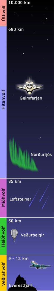 Enn eru ónefnd tvö hvolf, jónahvolfið og úthvolfið: