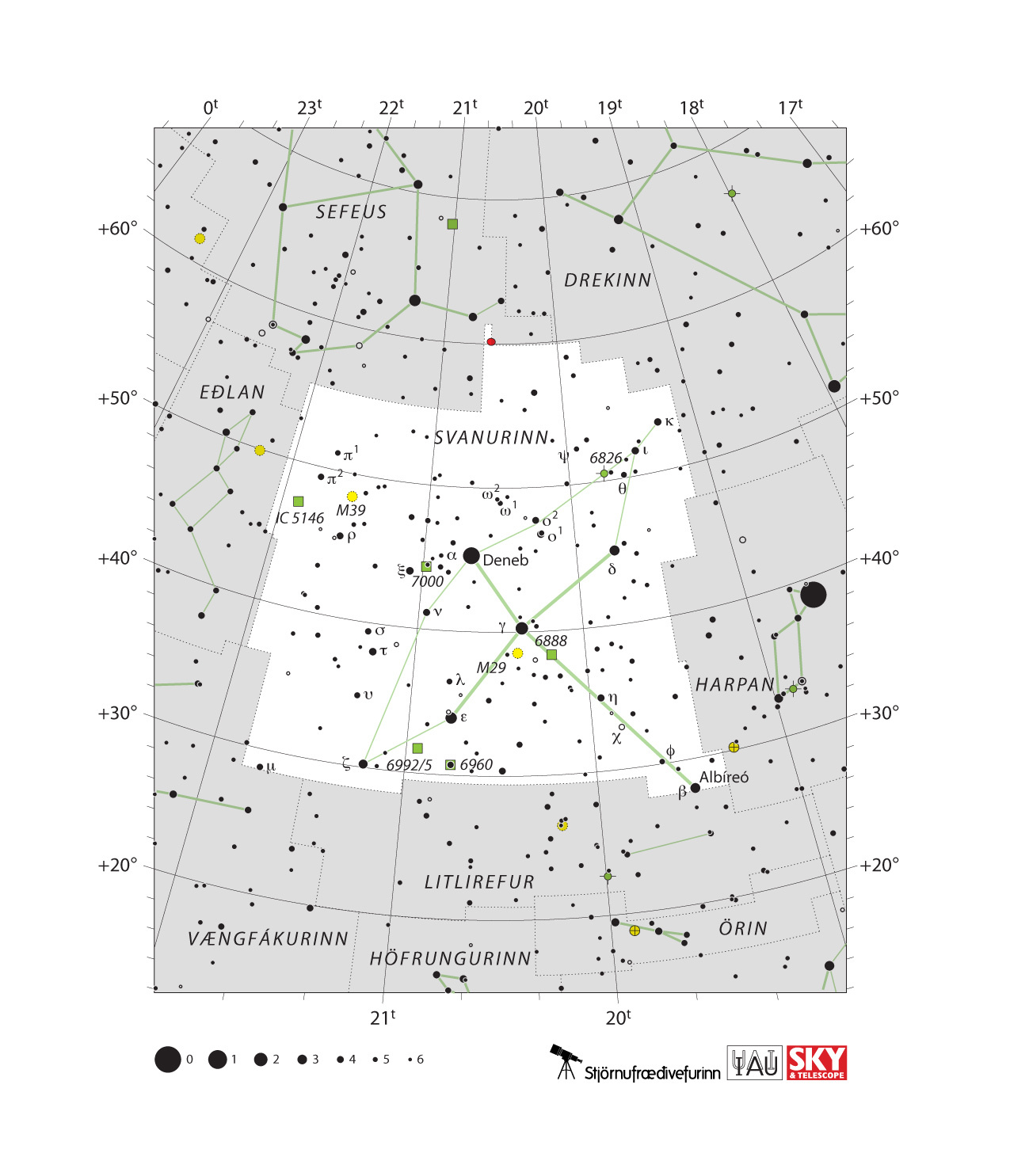 Stjörnukort af Svaninum í prentvænni útgáfu er að finna hér.